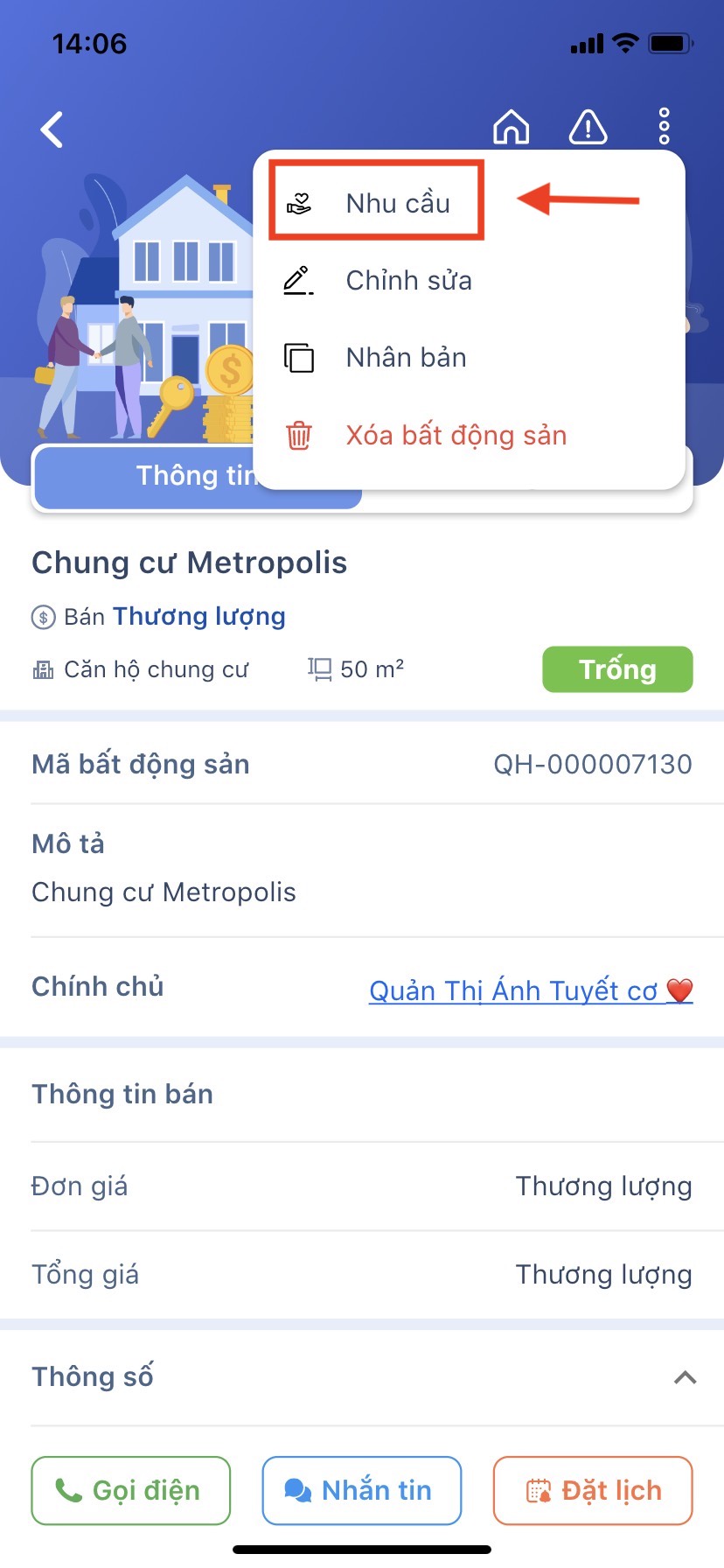 Để thêm mới nhu cầu cho bất động sản, bạn cần làm theo các bước sau đây: